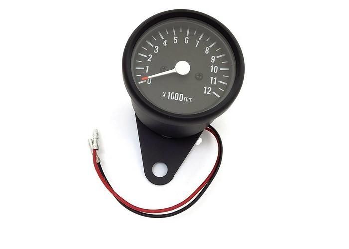 Edelstahl-Drehzahlmesser D= 60mm, Schwarzes Ziffernblatt. 12.000 RPM, Beleuchtung ist weiß.