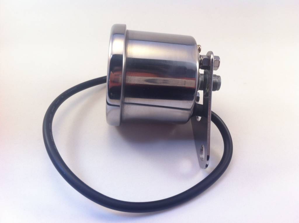 Edelstahl-Drehzahlmesser D= 60mm, Ziffernblatt Weiss. 12.000 RPM, Beleuchtung ist weiß.