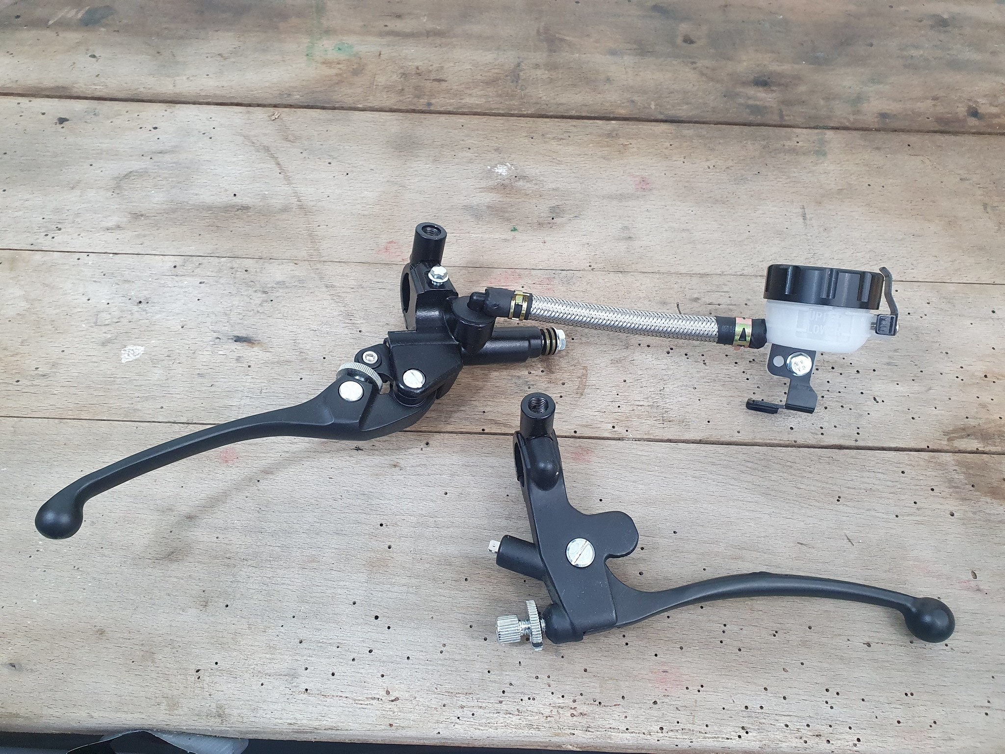 Brems-/Kupplungssatz (17MM). Schönes Modernes Satz mit einem 17mm Kolben in der Bremspumpe. Kurz gesagt, genug für 1 oder 2 Bremsscheibe! Die Kupplung ist mechanisch.
