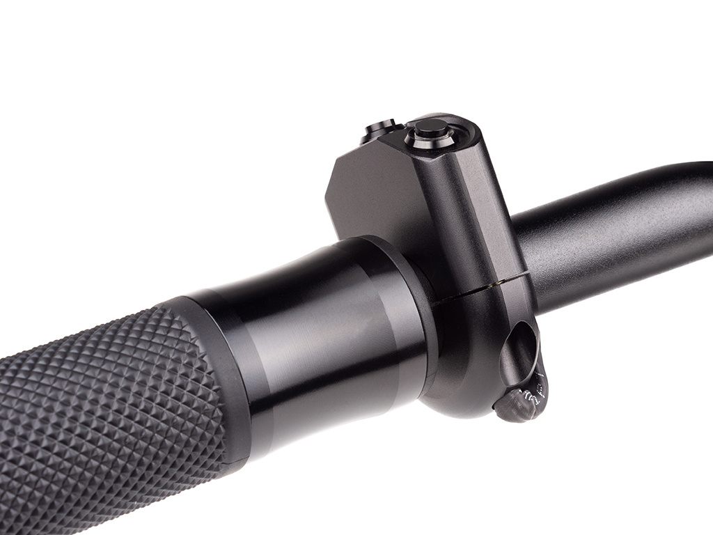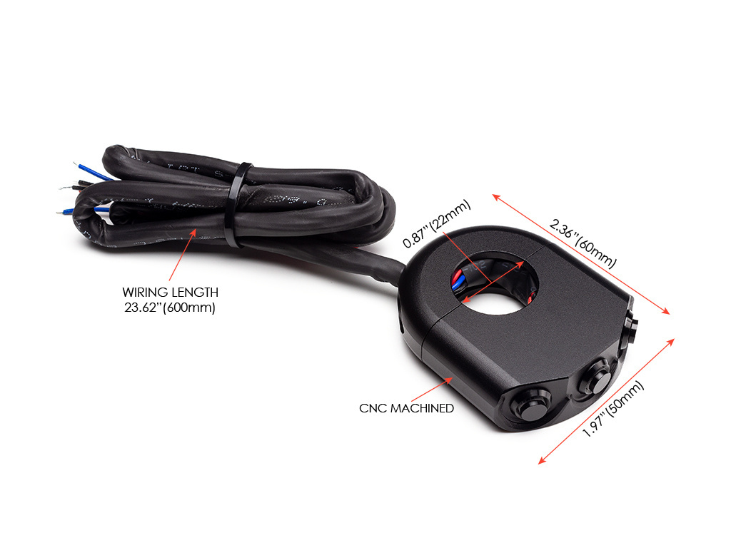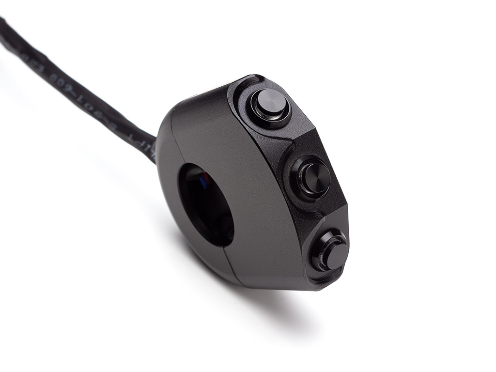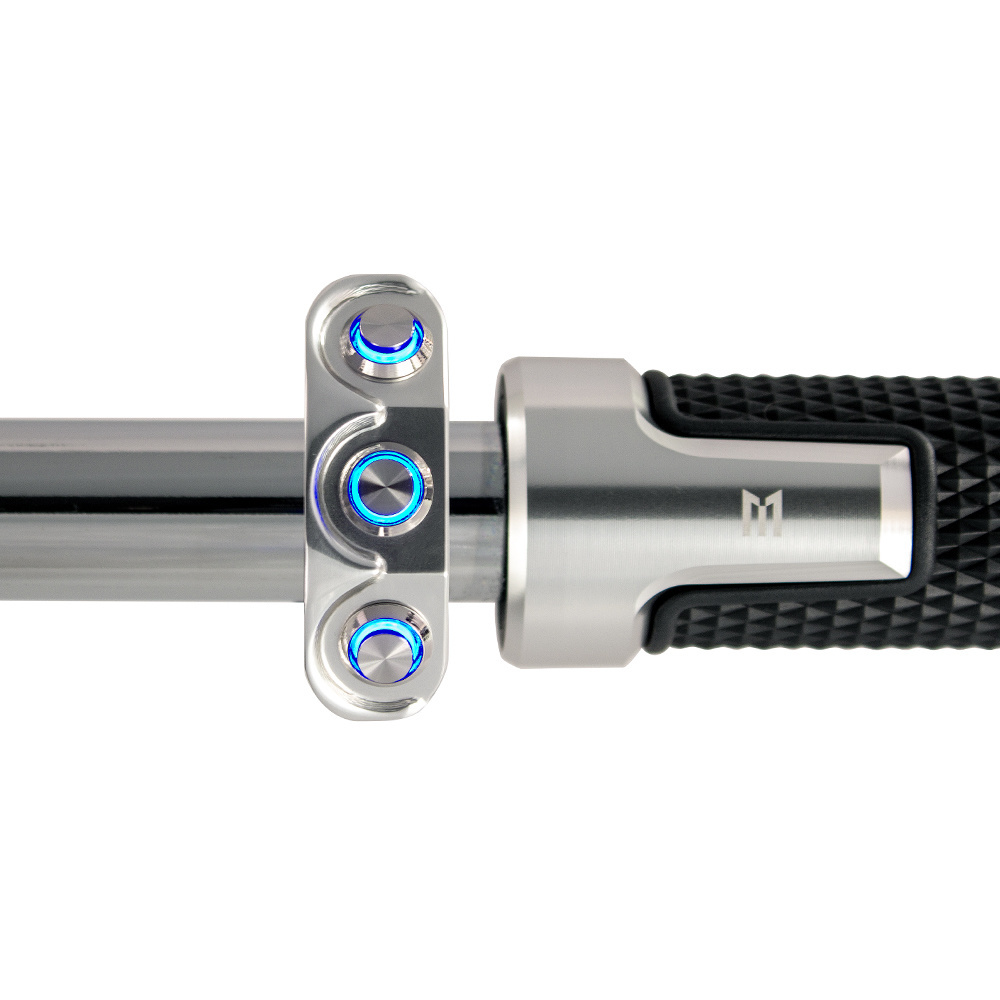 High-End-Lenkermontageschalter mit einer Kombination aus Ein / Aus- und Momentschalterfunktionen. Dieser Schalter kann entweder auf der linken oder rechten Seite Ihres Lenkers montiert werden, indem Sie ihn einfach umlegen. Hergestellt aus CNC-bearbeitetem T6061 Billet Aluminium mit atemberaubenden Linien und makellosem Finish.