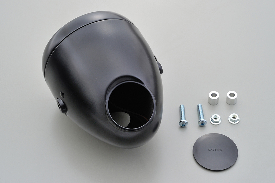 Der Scheinwerfer hat eine Aussparung am Gehäuse zur Montage eines Tachometers oder Drehzahlmessers mit 60 mm Ø (z. B. DAYTONA VELONA). Wenn kein Tacho verwendet wird, kann die mitgelieferte Abdeckkappe in das Loch eingesetzt werden.