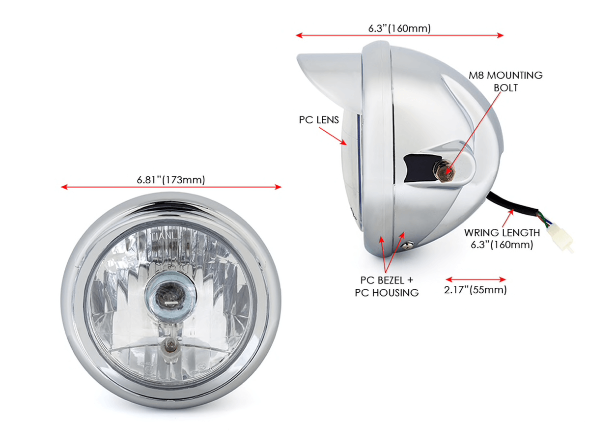6,75 "Chrom Universal Scheinwerfer + Visier - Emarked