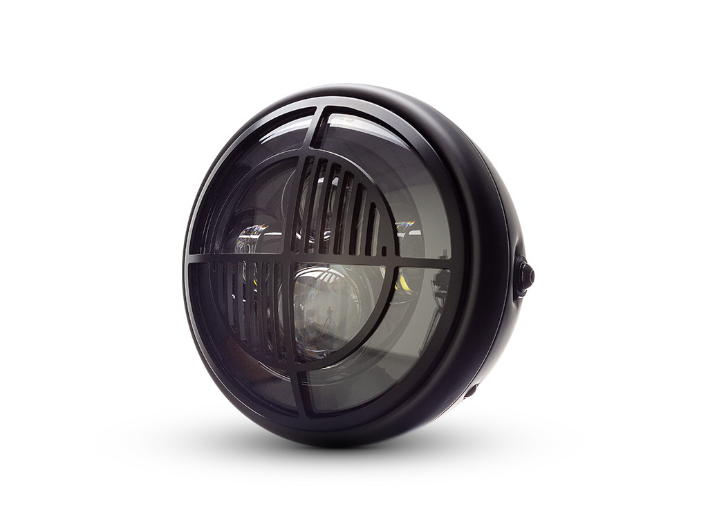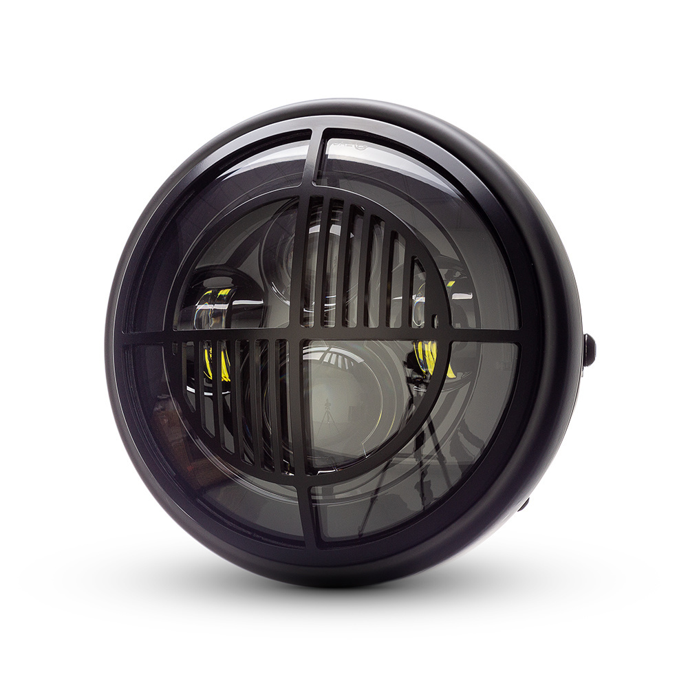 Es verfügt über moderne, helle LED-Einbauten und ein im Retro-Stil gehaltenes Gesicht, das in ein großes klassisches Metallgehäuse passt. Es sieht nicht nur gut aus, sondern ist auch viel heller als ein normaler 55-W-Glühlampenscheinwerfer.