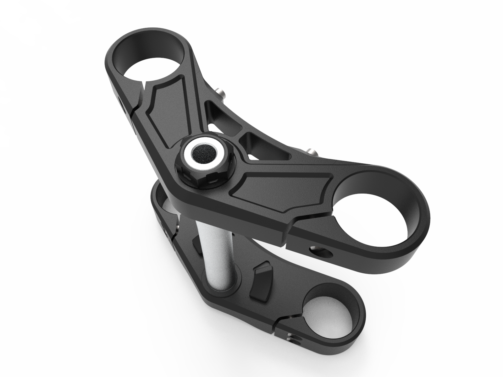 - Vollaluminium-Dreifachbaum, schwarz oder silber eloxiert, mit einstellbaren Lenkanschlägen und Halterung für Bremsleitungssplitter