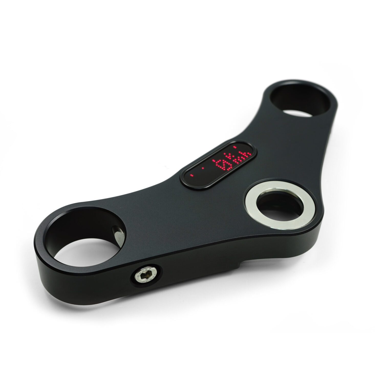 BMW Gabelbrücke mit integriertem Motogadget Tacho und verdeckter Gabelbefestigung. Für BMW K100 & K75 Modelle mit 41,3 mm Gabeln.