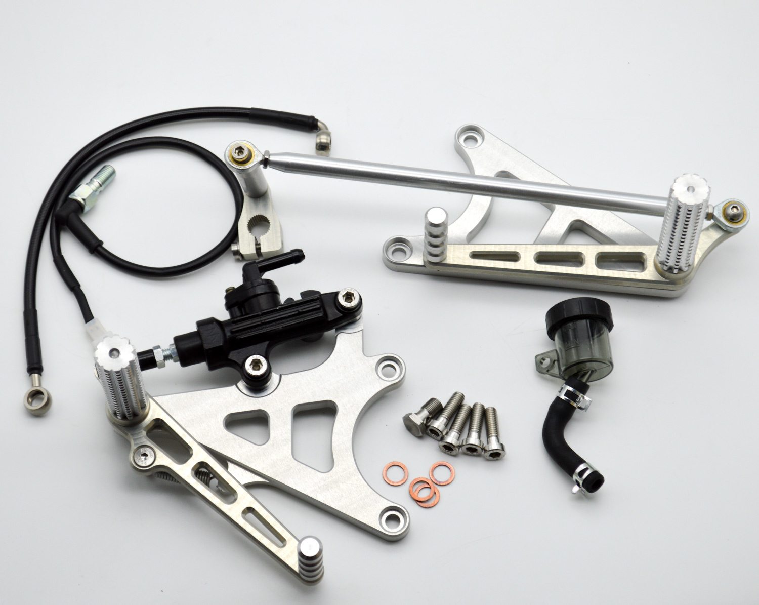 Komplettes Fußrastenset für die BMW K100. Dieses Set enthält alle benötigten Teile: Schalthebel, Fußrasten, Halterungen und sogar eine Bremspumpe! Plug & Play! Die Qualität ist hervorragend und die Optik exzellent. Ein Muss für Ihr BMW K-Projekt.