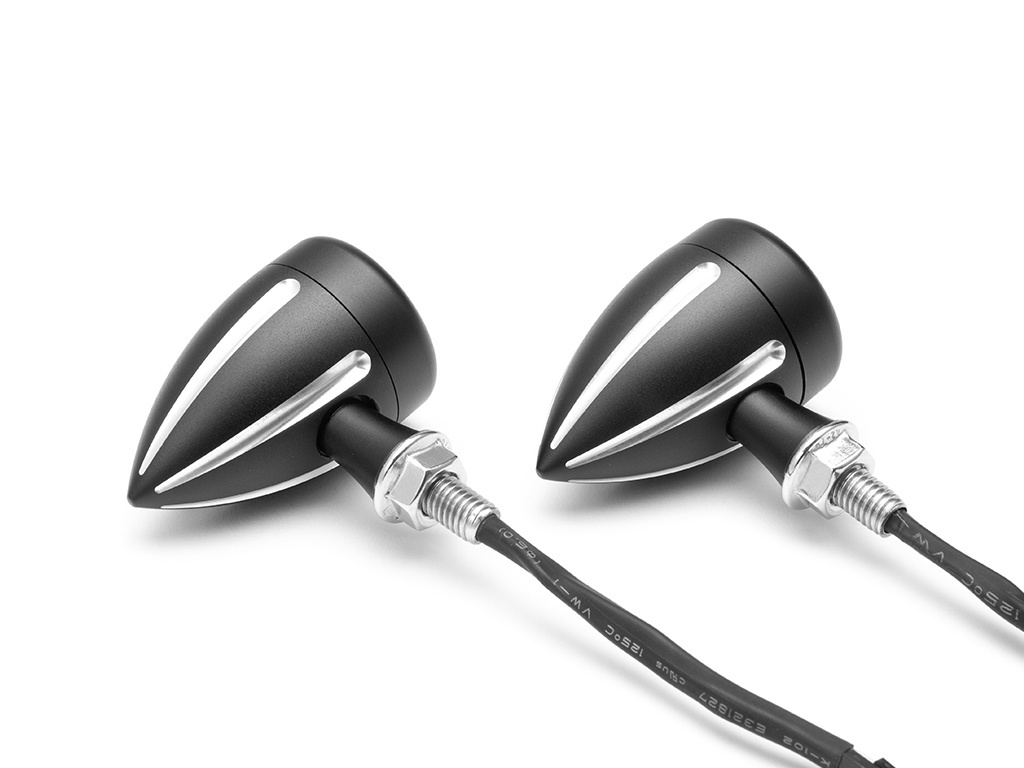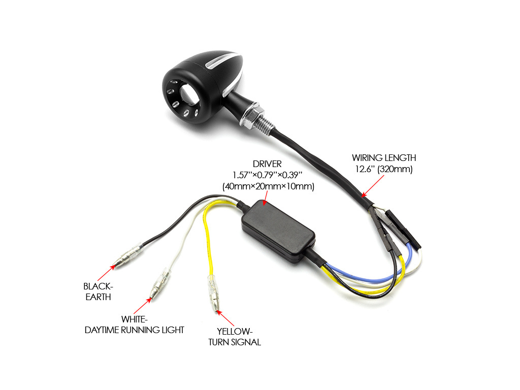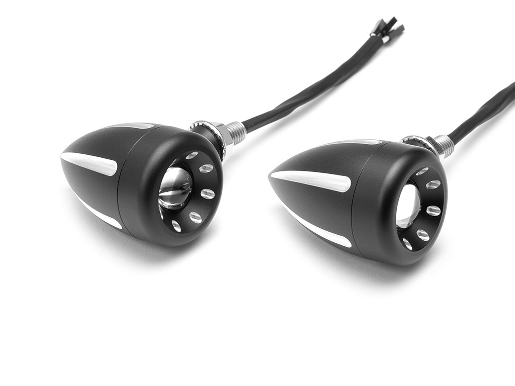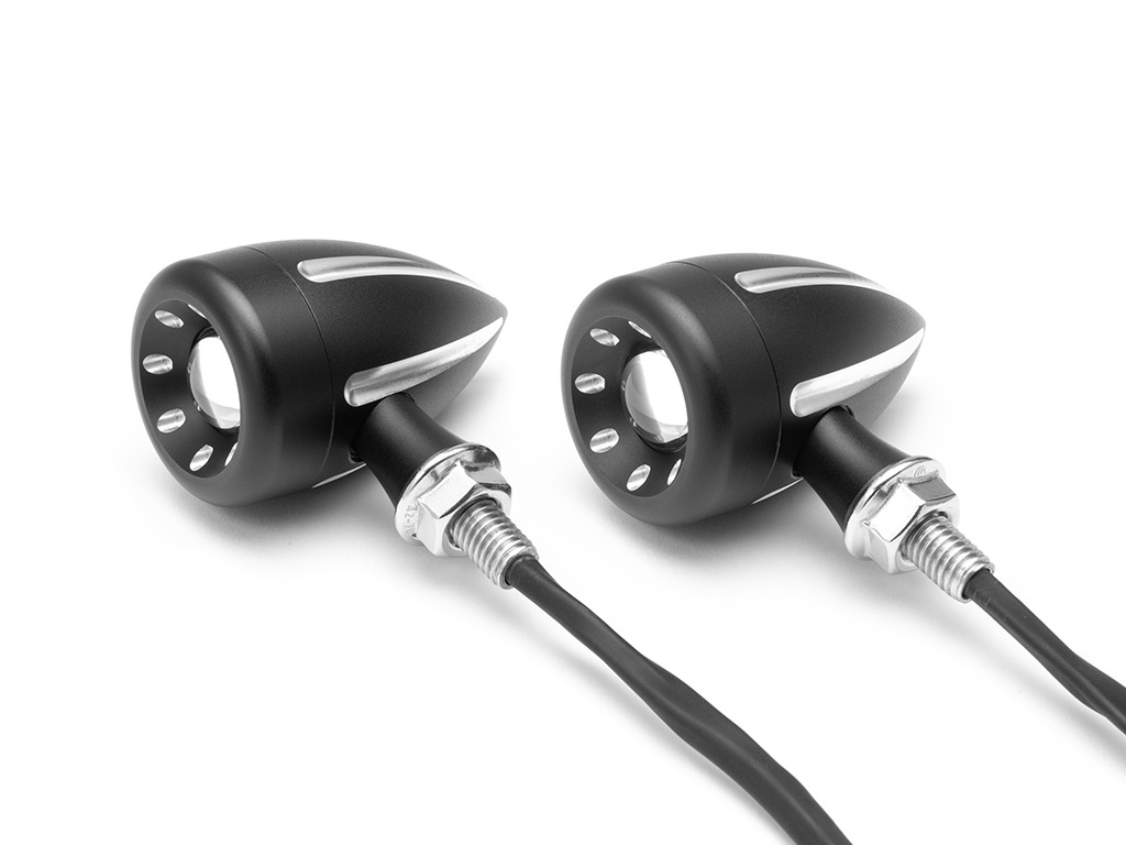 Diese integrierten LED-Blinker sind CNC-gefräst, superhell und von sehr hoher Qualität. Sie bieten eine einzigartige Lösung für die Front Ihres Motorrads und kombinieren Blinker und Tagfahrlicht, die eine verbesserte Sichtbarkeit und einen coolen Look bieten, alles in einem kleinen und diskreten All-in-One-Gehäuse. Sie verfügen über einen superhellen zweifarbigen 3-W-Cree-LED-Chip und eine Projektorlinse, die das Licht vergrößert. Die zweifarbige LED wechselt die Farbe zwischen den Funktionen - eine gelbe LED für Ihre Blinker und eine weiße LED für Ihr Tagfahrlicht.