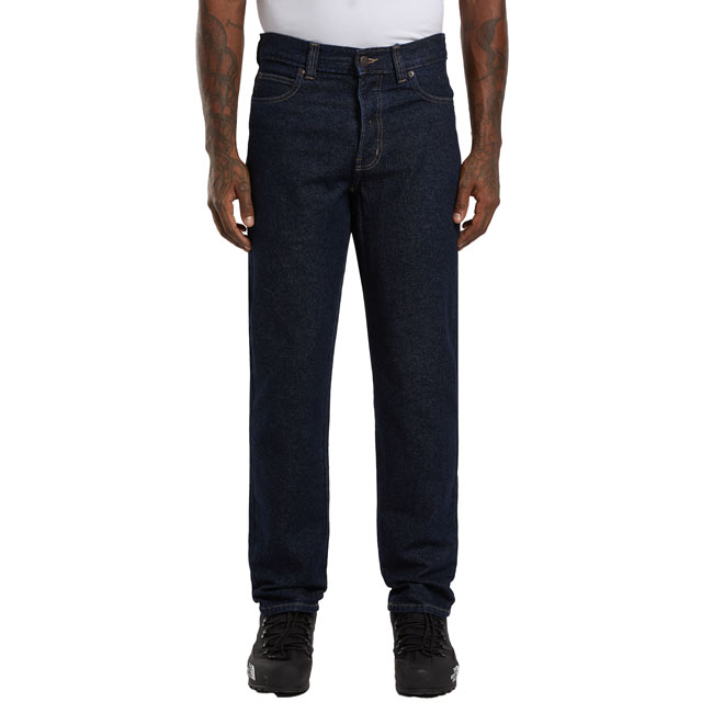 The Dickies 982 Slim jeans are a slim fit; tapered leg jeans. Made out of 11oz cross slub denim twill for comfort and durability; features include 5 pocket setup; shank fly closure; front pockets reinforced with metal rivets; and woven label on back patch pocket. Reliable and comfortable for daily wear and tear.• Slim fit with tapered leg• 100% cotton