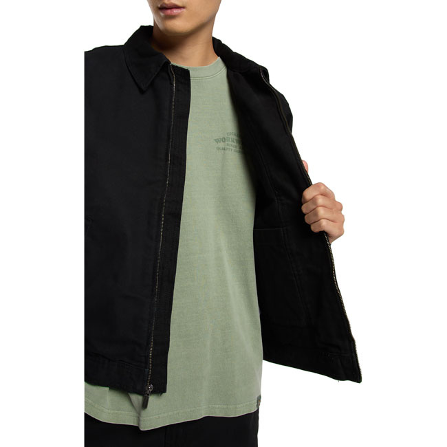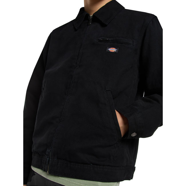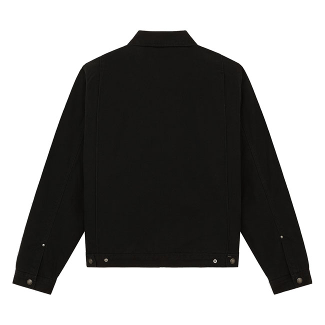 Die Dickies Painter Canvas Jacket ist eine Jacke in regulärer Passform, die auf der bekanntesten Silhouette der Marke, der Eisenhower, basiert. Gefertigt aus vorgewaschenem 12-Unzen-Baumwollcanvas, verfügt sie über schräge Leistentaschen, eine Brusttasche mit Reißverschluss links, verstellbare Bündchen und Saum, ein flauschiges Futter, Rückenfalten, einen durchgehenden Metallreißverschluss und Innentaschen. Eine klassische Arbeitsjacke, modernisiert durch neue Materialien und Details.