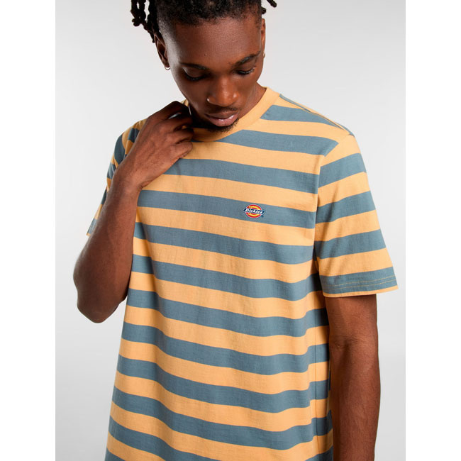 Das Dickies Rivergrove T-Shirt ist ein kurzärmeliges Kurzarm-T-Shirt mit regulärer Passform aus BCI-zertifiziertem Baumwolljersey. Es besticht durch horizontale Blockstreifen und ein gewebtes Dickies-Label auf der Brust. Ein weiches, schlichtes Baumwoll-Basic mit einem frischen College-Look, perfekt für jeden Tag.