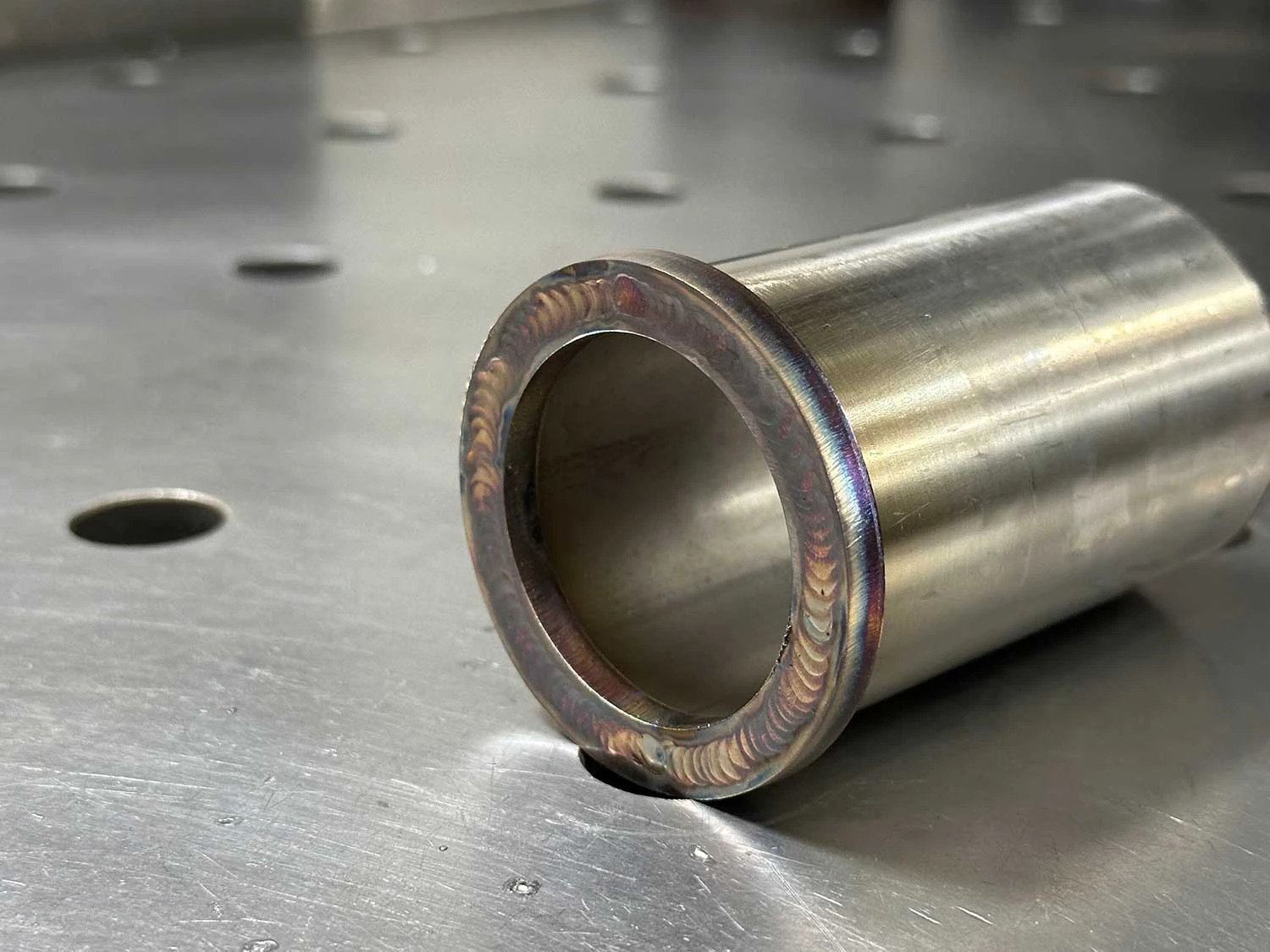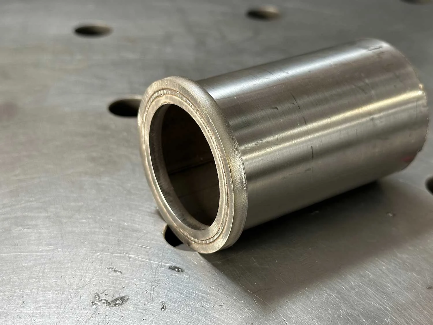 Zur Montage der Flansche muss das Rohr eine leichte Fase aufweisen. Anschließend können Sie die Flansche mit einem Schraubstock oder leichten Hammerschlägen auf das Rohr drücken. Sitzen sie fest, können Sie sie mit dem Rohr verschweißen und so eine optimale Dichtfläche für Ihre Auspuffdichtung schaffen. Wählen Sie die passende Größe für Ihren spezifischen Rohrdurchmesser!