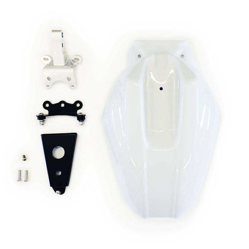 Fender aus ABS und lackiert mit Light White Urban Gs und transparentem Finish. Es wird ohne Änderung am Fahrrad montiert. Es wird mit Anweisungen, Halterungen und Schrauben für eine korrekte Installation geliefert. Es ersetzt den ursprünglichen vorderen Kotflügel und macht die Front viel aggressiver.