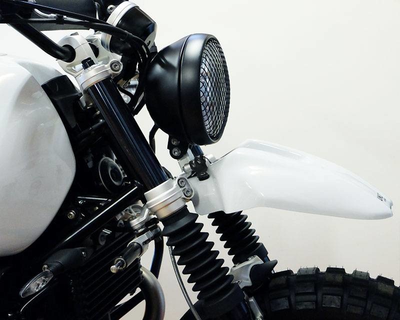 Kompletter Frontkotflügel mit Befestigungswinkeln + Scheinwerferhalter für: nineT Scrambler, nineT Pure, nineT Roadster. Bei diesen Modellen ist der Scheinwerfer niedriger als der nineT Urban GS angeordnet. Daher ist die Scheinwerferhalterung für diesen vorderen Kotflügel nicht geeignet. Aus diesem Grund unterstützen wir die Positionierung des Scheinwerfers.