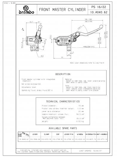 Handbremszylinder / Silver PS16 Für 22MM Lenker.