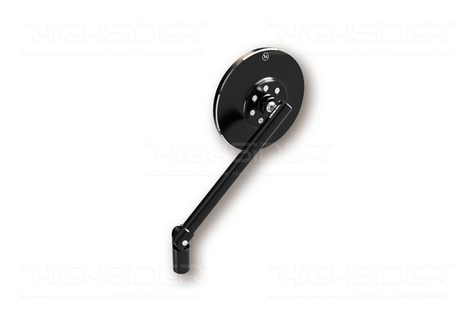 Edler, CNC-gefräster Universal-Spiegel mit einem runden Kopf aus schwarz eloxiertem Aluminium. Die blanken 2C-Fasen zeichnen das edle, stilvolle Design dieses Roadster-Spiegels aus. Dank der Verwendung eines zweiten Gelenks am Stiel ergeben sich zusätzliche Einstellmöglichkeiten für Ihre Sicherheit. Das leicht getönte und gewölbte Spiegelglas bietet einen optimalen Blendschutz. Für linke und rechte Seite verwendbar.