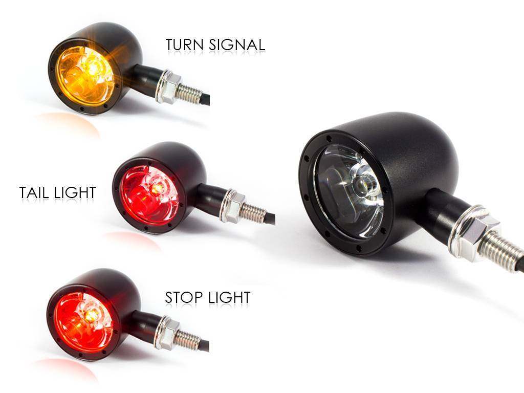 These Integrated LED Turn Signals are CNC machined, super bright and are very high quality. They combine all the functions needed for the rear of your motorcycle packed into an all-in-one small & discreet Classic housing.