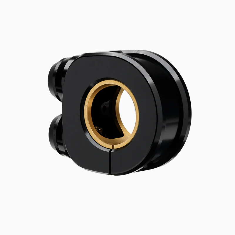 Die zwei bzw. drei Taster pro Einheit sind stets schwarz. Eine versteckte M4-Befestigungsschraube aus Edelstahl klemmt das Gehäuse sicher und stabil an jedem Lenker.