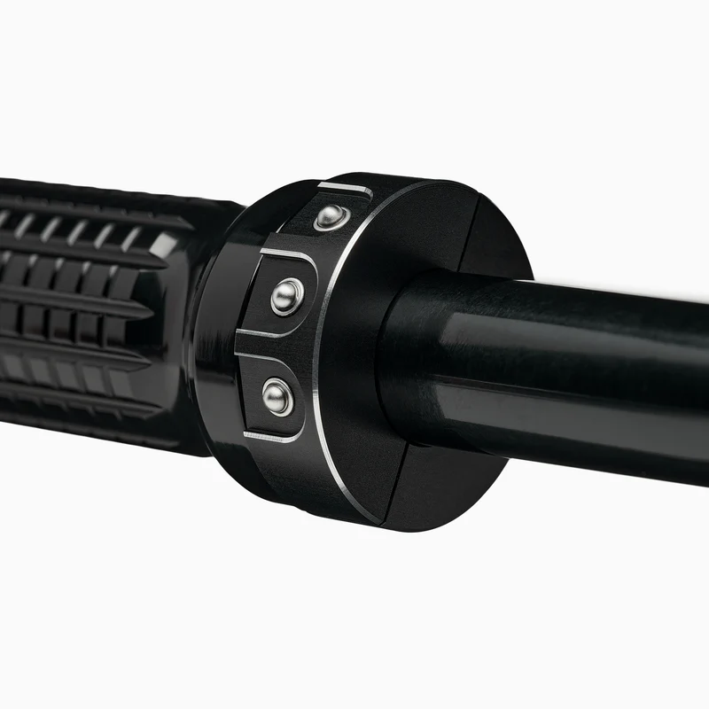 Das Gehäuse besteht aus CNC-gefrästem Billet-Aluminium und ist in den Oberflächen Hochglanz oder Schwarz erhältlich. Zwei bündig eingelassene M5-Befestigungsschrauben aus Edelstahl sorgen für eine sichere und stabile Befestigung der Druckknopfsteuerung an allen Lenkern.