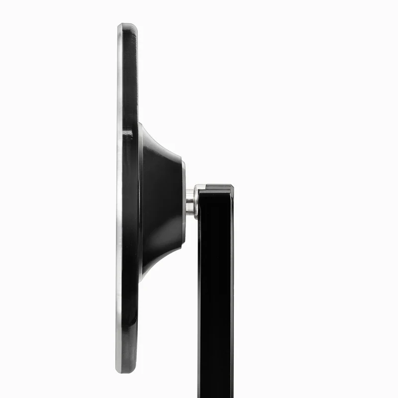 Spiegelkörper, Spiegelarm und die Klemmung für das Lenkerende werden auf CNC-Maschinen aus dem vollen Aluminium gefräst und hochwertig eloxiert. Alle Schrauben bestehen aus Edelstahl. Durch das präzise Kugelgelenk lässt sich der Spiegel komfortabel und sehr stabil verstellen. Glasbruch oder herausfallendes Glas ist schlichtweg ausgeschlossen!