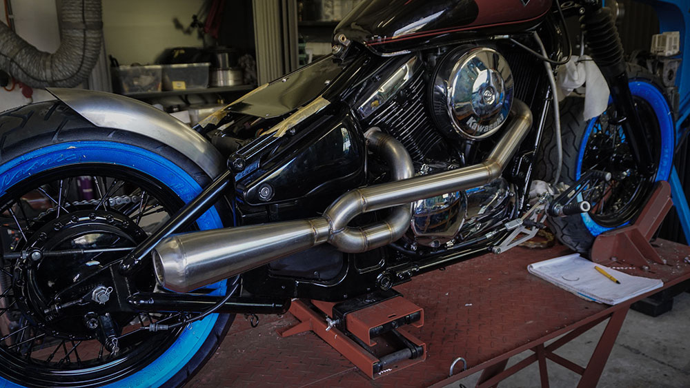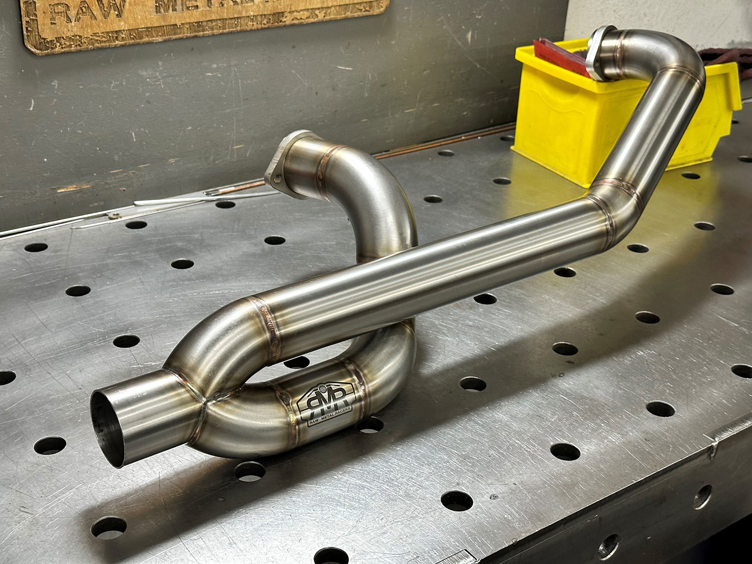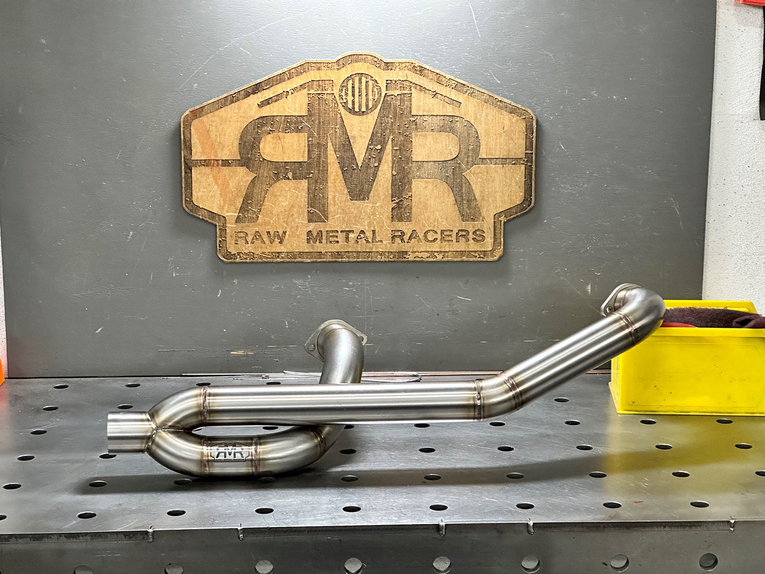 Maßgefertigte Auspuffanlagen komplett aus Edelstahl für jedes Motorrad. Außerdem fertigt er Auspuffanlagen, wie diesen toll aussehenden Auspuff für die Kawasaki VN800.