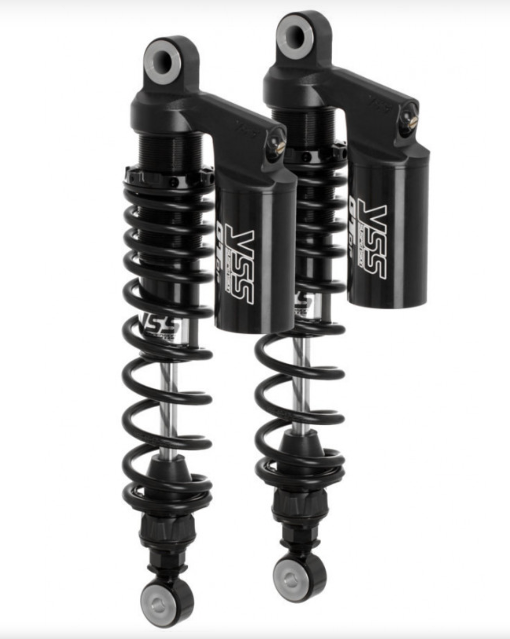 Das YSS RG362-TRCL Set besteht aus 2 gut aussehenden "Piggyback" Stoßdämpfern für IhrenTwin-Shock Cafe Racer, Retro Fighter, Custom oder klassisches Superbike. twin-shock cafe-racer. Die Top-line Stoßdämpfer sind aus hochwertigem Aluminium gefertigt und kombiniert mit dem schönen "Piggyback" Reservoir haben sie ein "rassiges" Aussehen und sind voll einstellbar nach Ihrem Geschmack.