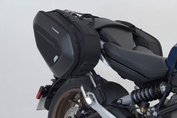SW-Motech Pro Blaze H Satteltaschenset speziell für Zero Modelle mit höherem Auspuff entwickelt. Es verwandelt das sportliche Fahrrad in ein Tourenrad. Diese Taschen sind leicht und geräumig genug, um 30-40L Volumen aufzunehmen.