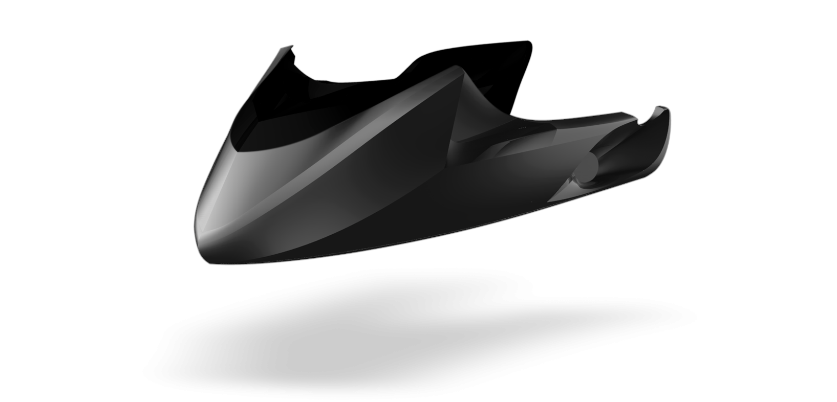 Der Motorspoiler besteht aus ABS-Kunststoff in glänzendem Schwarz mit Acrylbeschichtung und UV-Schutz.