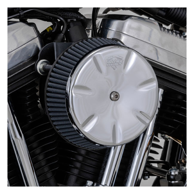- Aufbau: Hergestellt aus auswaschbarem High-Flow-Luftfilterelement und Stahlabdeckung mit eingeprägtem Vance & Hines V-Twin-Logo