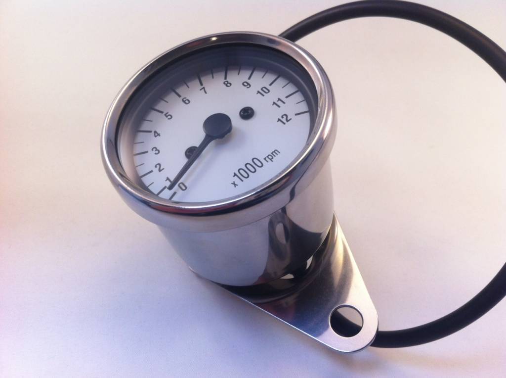 1: 4 Mechanical (cable) Tachometer White / Chrome