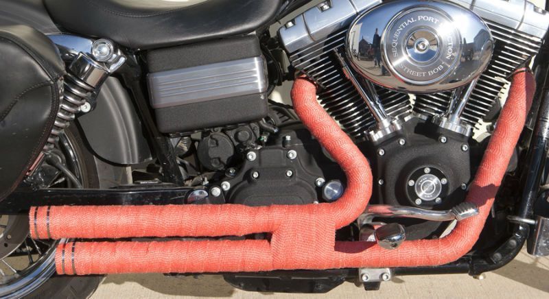 25FT x 2" Red Exhaust Wrap. This a very unique type of wrap that does draw a lot of attention to your bike! Beware of talking about your bike a bit more than you already do! Really cool on Cafe Racers!