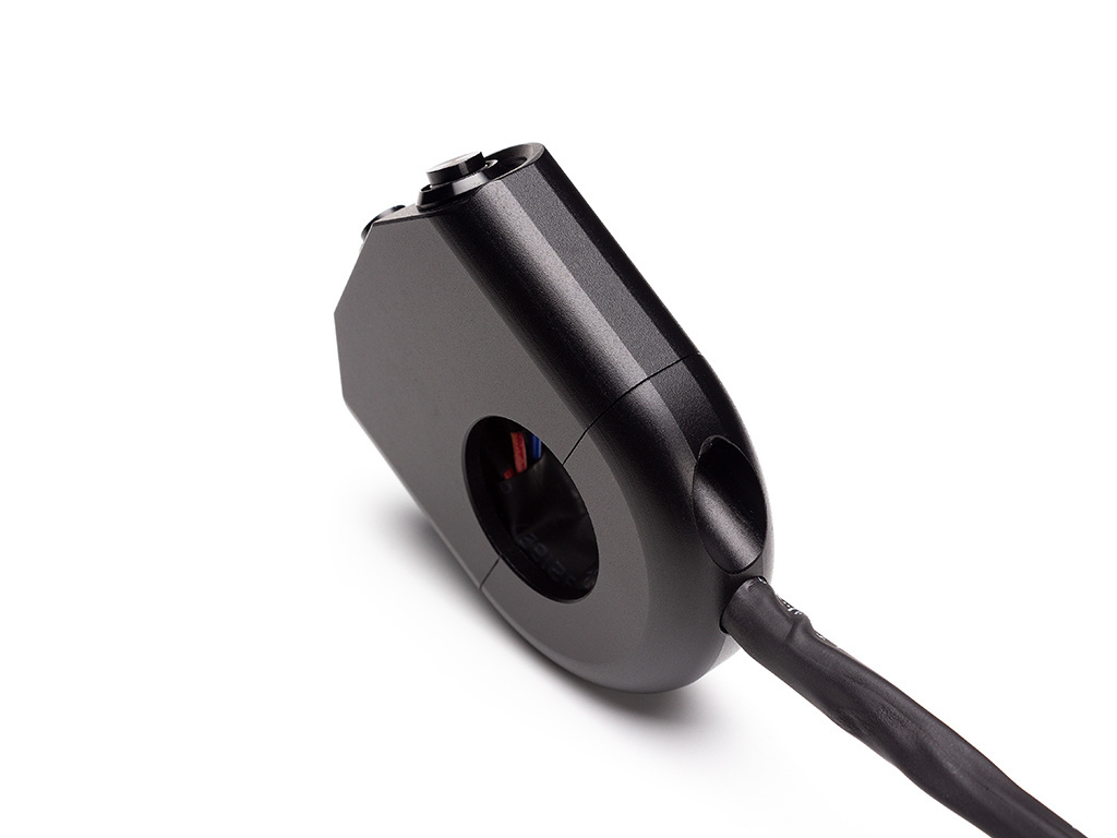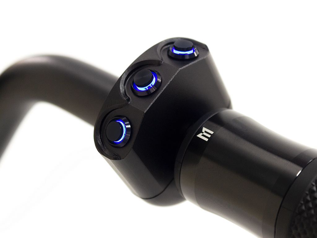 High end handlebar mount switch with a combination of On/Off & Momentary switch functions. This switch can be mounted either on the left or right side of your handlebars simply by flipping it. Made from CNC Machined T6061 Billet Aluminum with stunning lines and a faultless finish.
