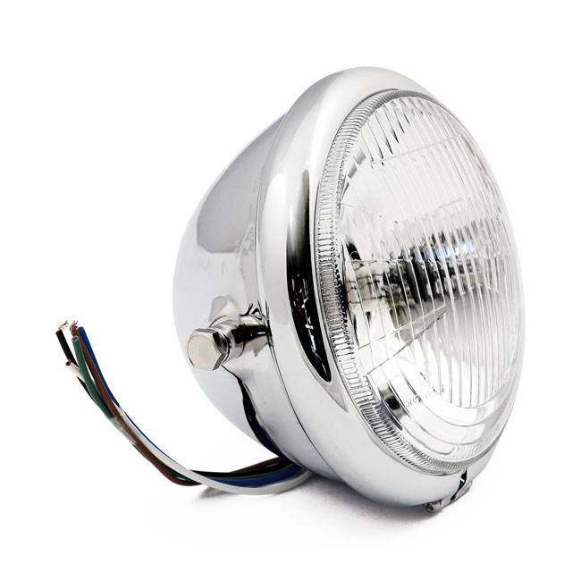 5 3/4 inch main lamp, metal housing, chromed, PRISM REFLECTOR, with parking light, side mount, housing diameter 155 mm, depth without lens 110 mm.