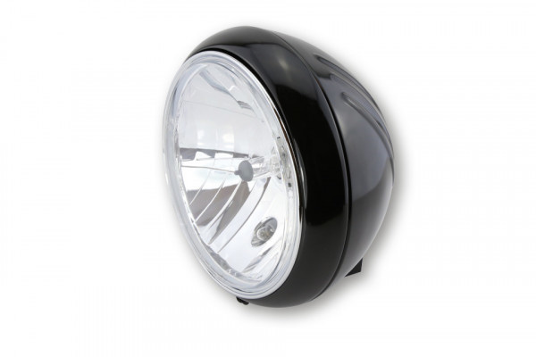 7" Yuma 1 Headlight Bottom Mount - Gloss Black . This high quality and E-marked headlight, has a very nice finish and a metal housing. The hemispherical spotlight is also robust and easy to install.
