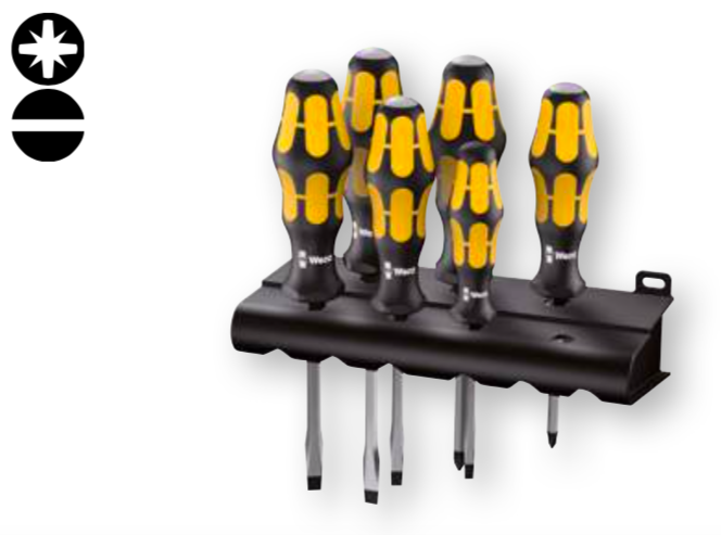 The 6 screwdrivers from the 932/918/6 Chisel / Impact Screwdriver Set from Wera are all equipped with an impact-resistant head and in adjustable rotation resistance so you can choose the right adjustment for every job.