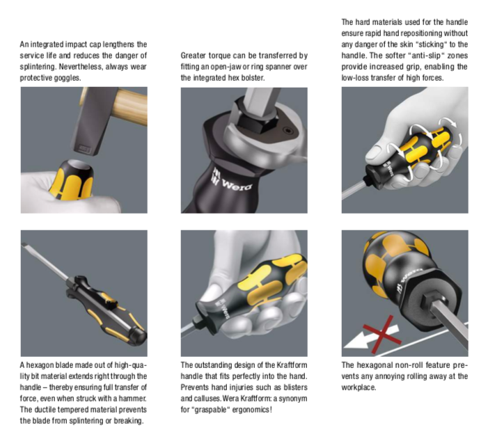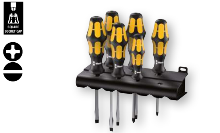 The 6 screwdrivers from the 932 S/6 Chisel / Impact Screwdriver Set from Wera are all equipped with an impact-resistant head and in adjustable rotation resistance so you can choose the right adjustment for every job.