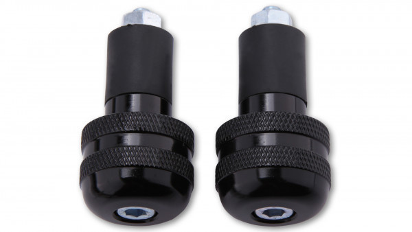 SHIN YO handlebar weight, aluminium/black, knurled, for steel handlebars. They come per pair and have a M6 thread. They have a rubber spacer which will make it easy to clamp in most handlebars. Size: total length = 57mm, diameter = 29 mm, head depth = 21mm