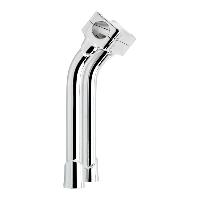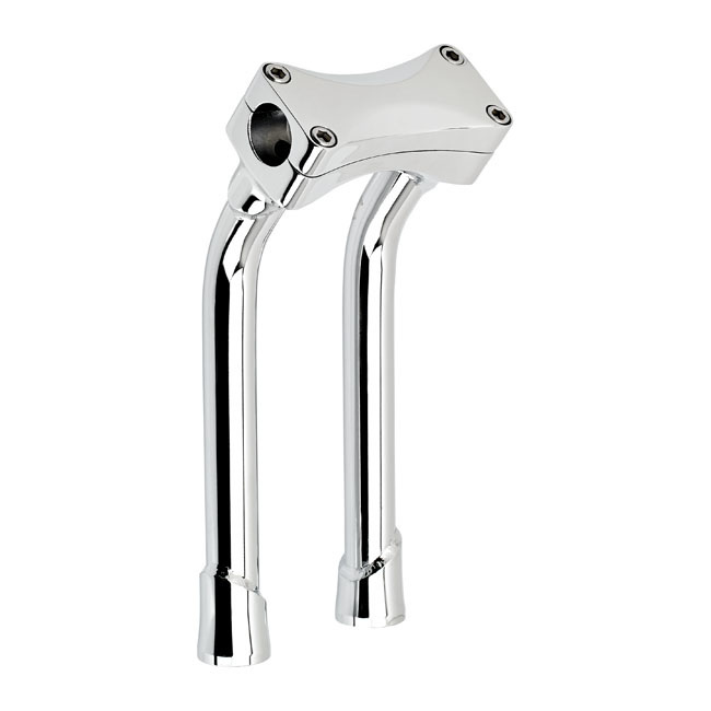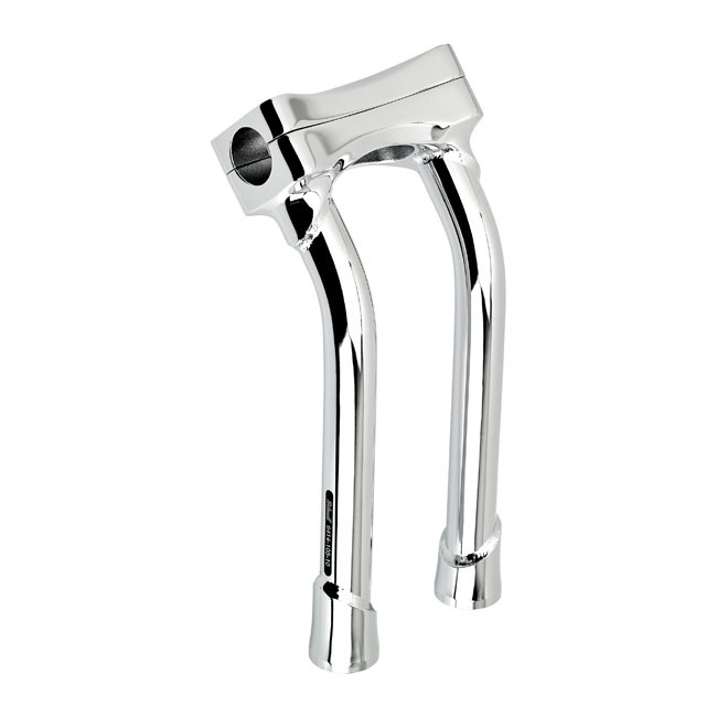 It has electroplated finishes in black or chrome and comes with approval. It is suitable for 1-1/8 (28.6mm) handlebars. It comes with 2"(51mm) Pullback, investment-cast steel upper and threaded lower construction. Riser tubes are made of 3mm thick, seamless, TIG-welded 4130 chromoly tubing with 1/2-13 threaded mounting holes that accept standard riser bolts. 3-1/2" (89mm) spacing to suit most H-D top triple trees. The stock H-D speedo and tachometer brackets fit the top clamp bolt pattern. The specific type of approval and validity for the bike model and years listed on the test report should be confirmed with your neighbourhood MCS dealer or the MCS sales department.