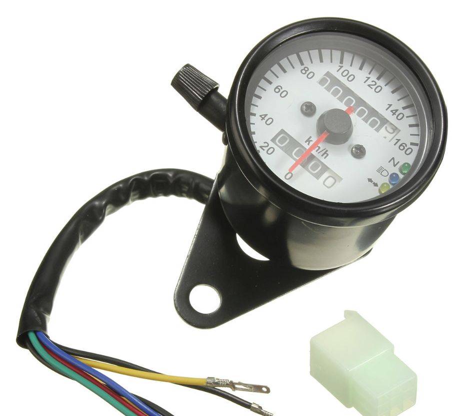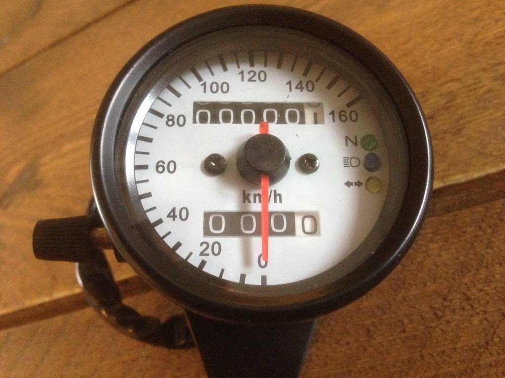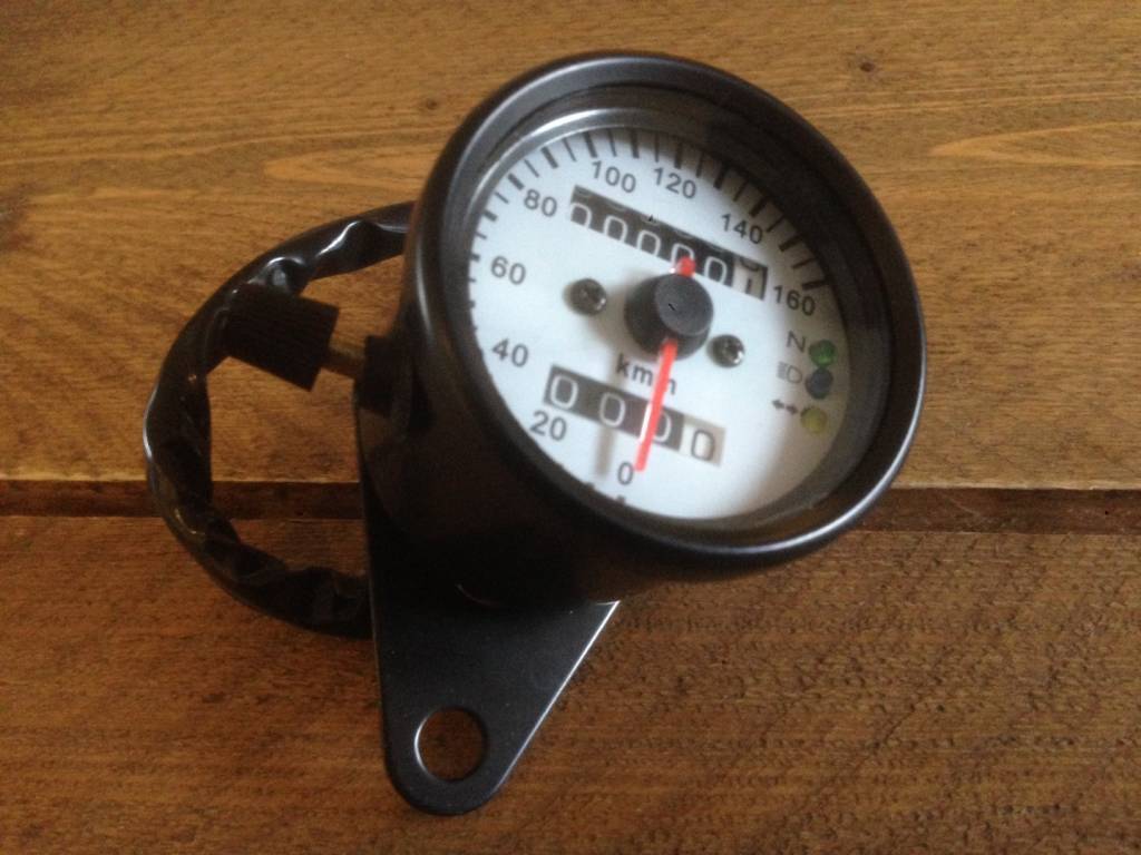 Steel Cafe Racer Speedometer. Illuminated. White dial.