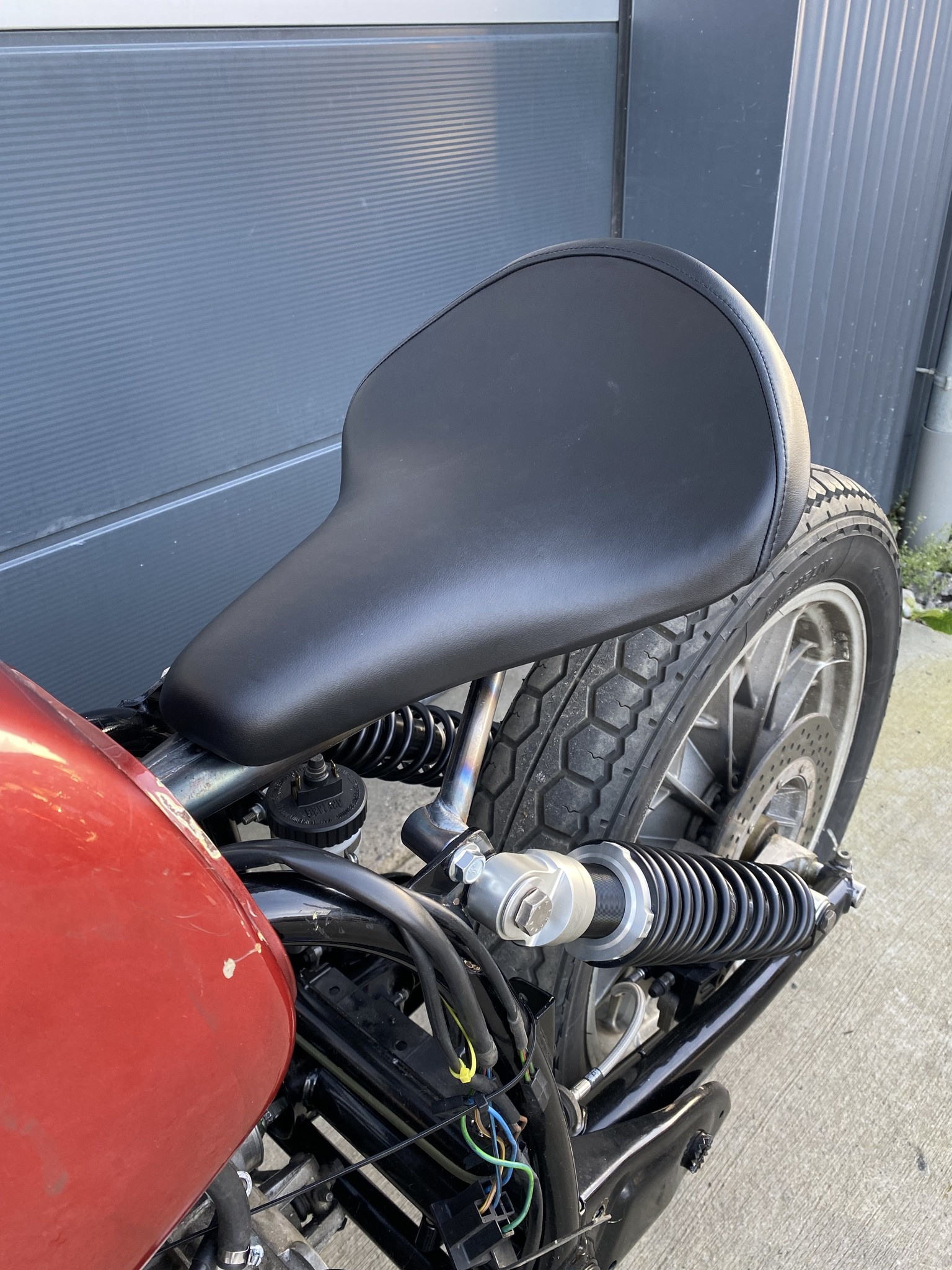 On the pictures, a Biltwell Solo 2 seat is installed.