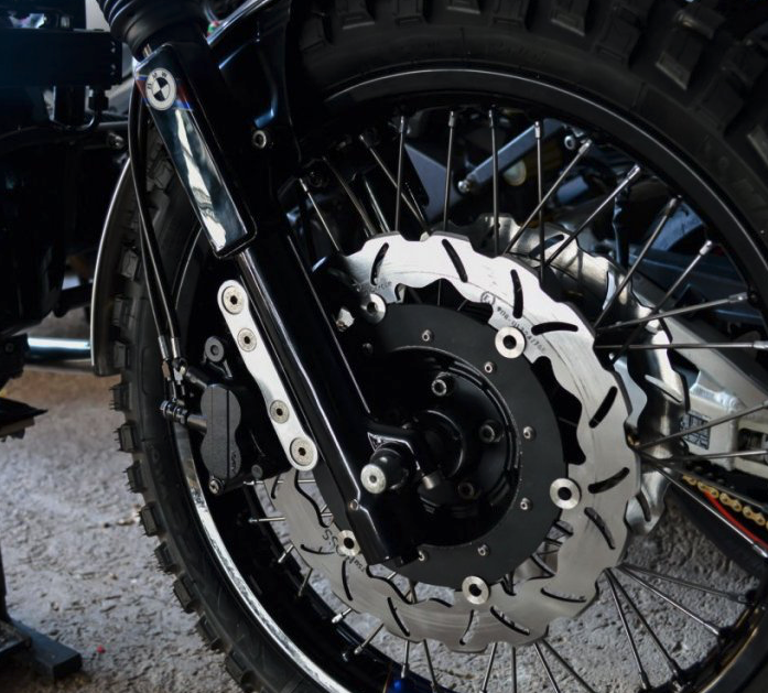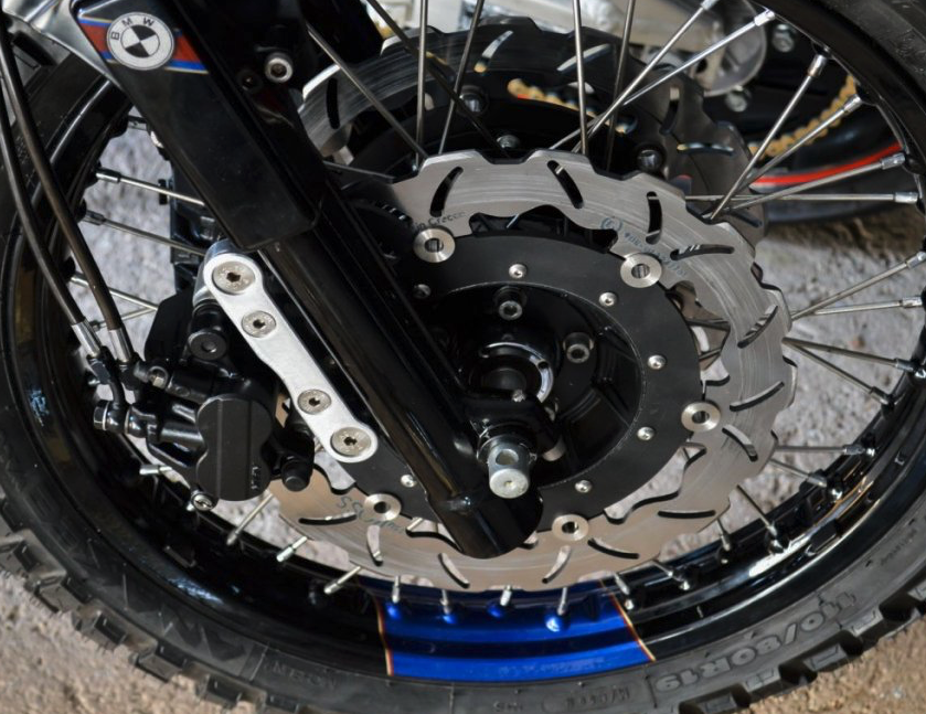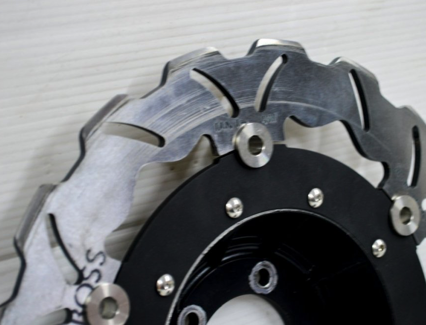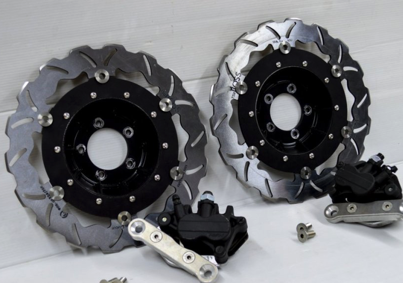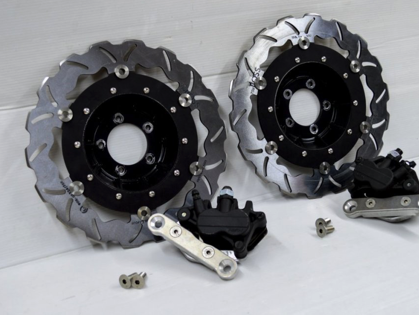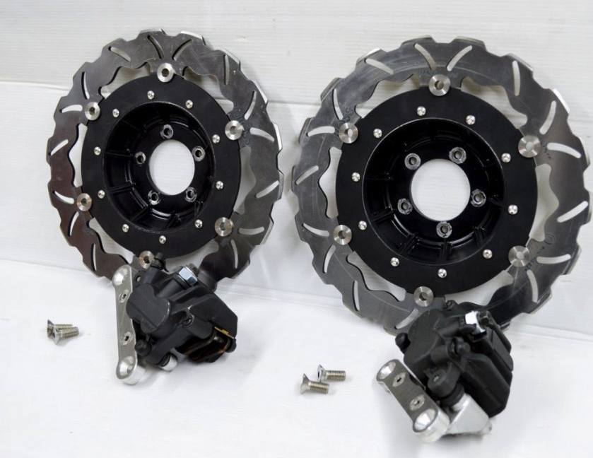 The discs are not just discs, these are 300 mm floating brake discs. The advantage of this is that you always have optimal brake pressure since the disc centres itself. Also, there is less vibration in your brake lever.