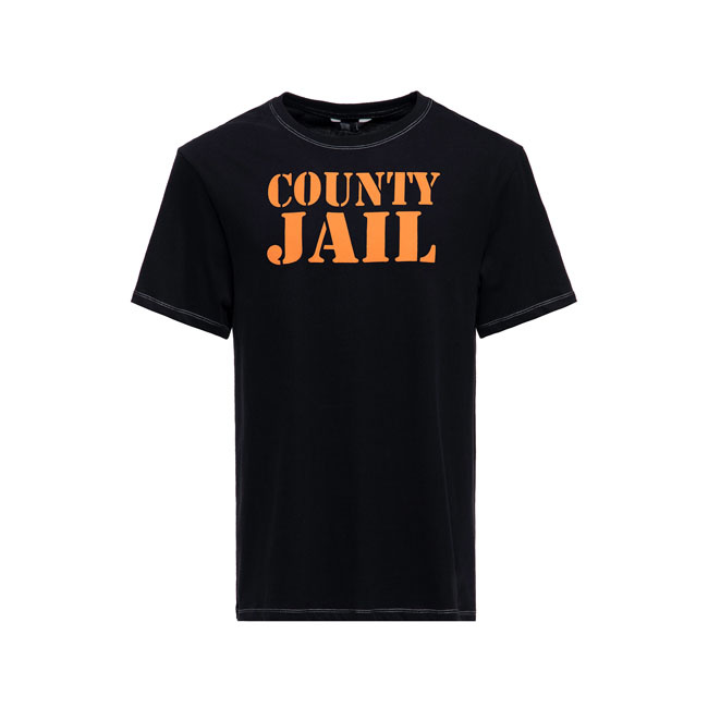 With the King Kerosin "County Jail" t-shirt you will become a star in the fashion prison! The eye-catching statement prints in bright orange on the front and back leave no doubt that you were arrested for exceptional style. This t-shirt not only impresses with its striking prints, but also with its contrasting colored seams, which give the design a special touch. Made from pure cotton, it offers maximum comfort and a comfortable regular fit that is suitable for all everyday adventures.
