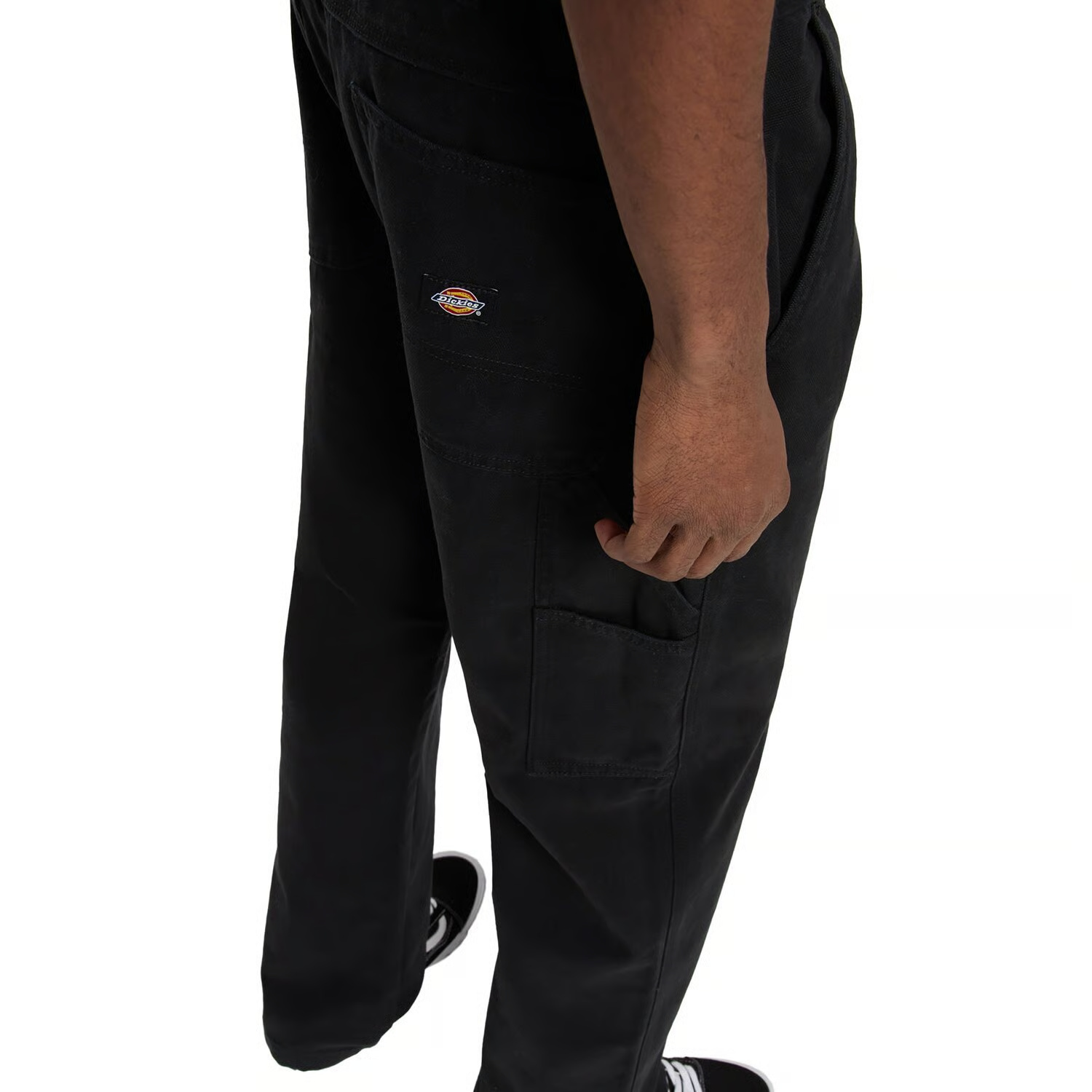 The Dickies Carpenter Canvas Pant is a regular-fit, straight-leg carpenter style made from 12oz cotton canvas with a comfort-washed hand feel. It features classic carpenter details including a hammer loop, ruler pocket, metal trims, a zip-fly with metal shank, a back yoke, and a woven Dickies label on the back pocket. A hardwearing and functional pant with authentic Dickies detailing and fabrication.