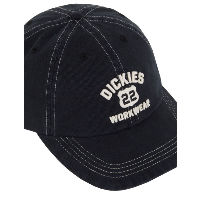 The Dickies Grimsley Cap delivers authentic Dickies styling with 100% garment‑dyed cotton construction. It features contrast stitching, antique silver and tape adjustable closure, dyed‑to‑match embroidered eyelets, a woven Dickies label, and raised route‑inspired embroidered artwork.