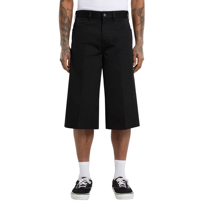 The Dickies Union 17 Inch Loose Short is an extra loose baggy-fit short with a slight A-line shape. Made from wrinkle- and stain-resistant 8.3oz poly-cotton blend with a soft hand feel, it features metal branded shank buttons, rounded back patch pockets, rounded front pockets, a clean front crease, a 1'' fold-back hem and a woven Dickies label on the back pocket. Designed for durability, comfort and ease of movement.