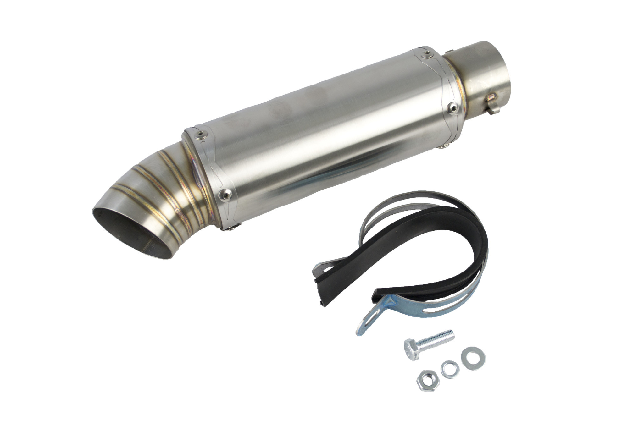 This is a complete silencer set. This silencer is made of stainless steel. It is universally applicable. It fits any type of engine. On Cafe racers, Trackers, Scramblers, Choppers and bobbers.