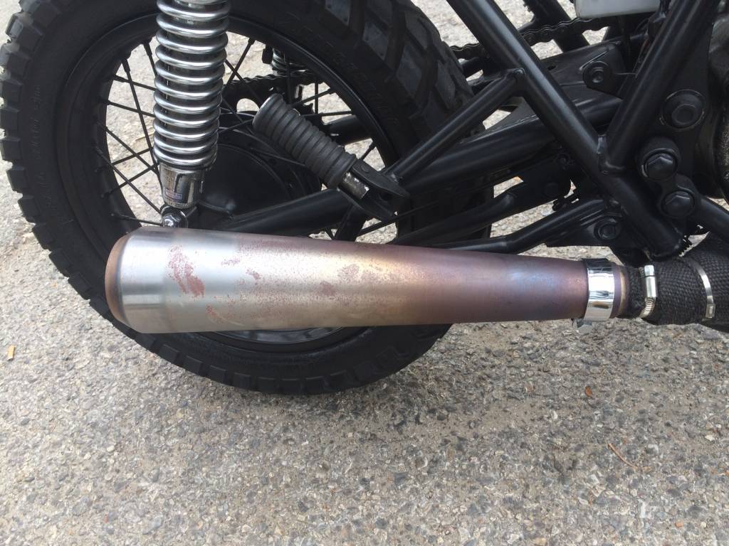 Modified version of our popular shorty reverse cone Megatone silencer. The reverse cone is now welded as there is no need for access to a baffle, leaving a smooth traditional look. Ideal for cafe racers. 1 3/4" inlet, and includes 3 piece reducer set for smaller pipes.