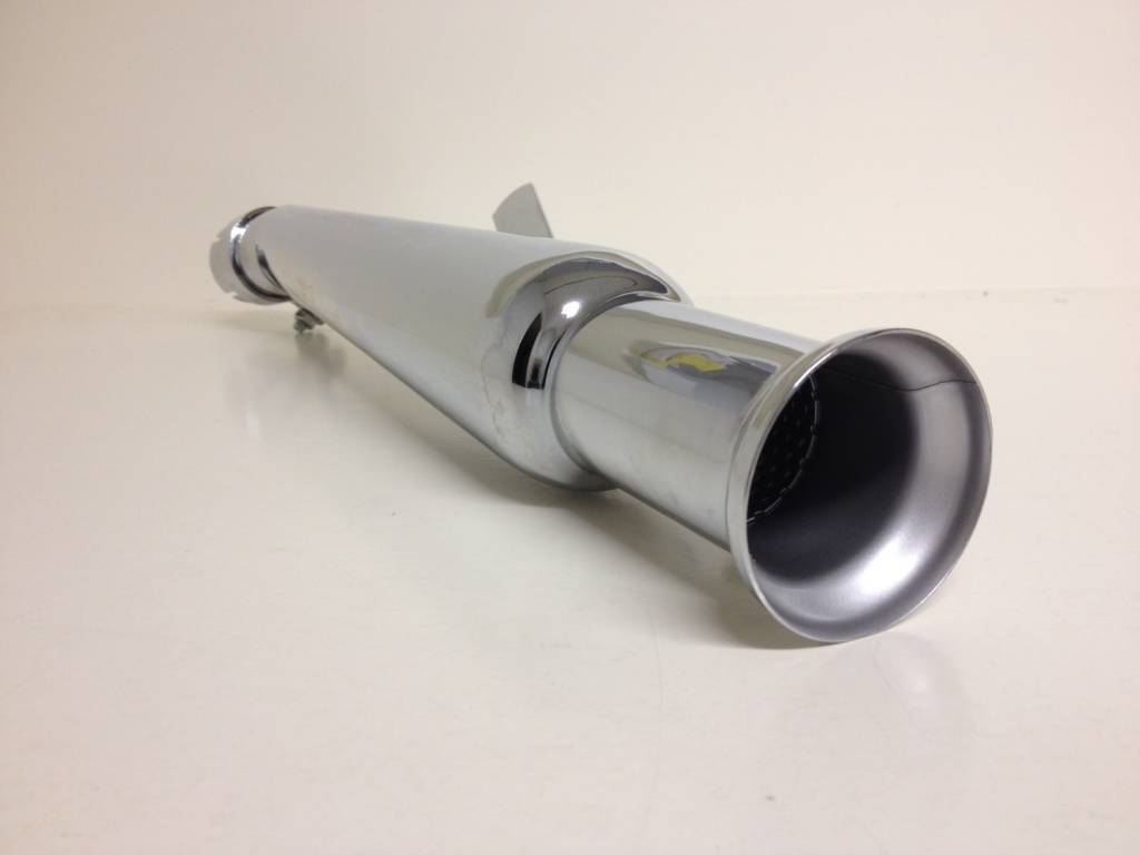 Universal Chrome 20" Tulip End Megaphone Upswept Left Hand silencer.
