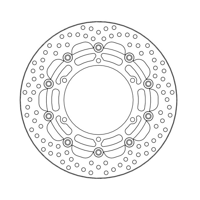 The Moto-Master HALO brake disc has a premium quality stainless steel outer ring allows for high performance braking while at the same time extremely durable. - Exact size and positioning of the venting holes ensures equal heat dispersion under high thermal stress while the brake pad contact surface is cleaned evenly. - The laser cut and precision grinded outer ring is fixed to a billet CNC machined aircraft aluminium carrier which is black anodized and laser marked. - Lightweight stainless steel floaters. - TUV approved.