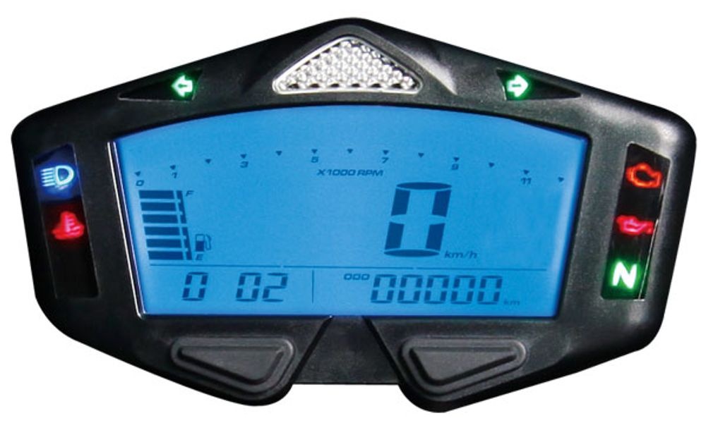 The Koso DB03-R Multi-Function Motorcycle Digital Dash Cockpit is the perfect fit for any street bikes. It has a blue backlight that makes it very easy to read at night even at high speed. The integrated indicator lights do provide all the necessary information for any street use. The changeable RPM scale allows this gauge to fit about any engine applications.