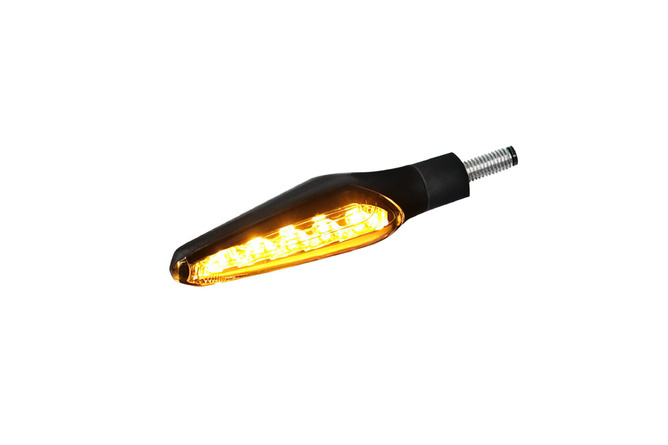 These assertive-looking CE-approved black Koso Z4 LED turn signals fit easily onto your vehicle.